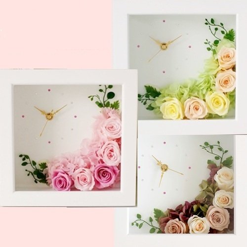 プリザーブドフラワー 時計 ブライダルピンク (オレンジ-イエロー)