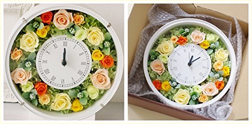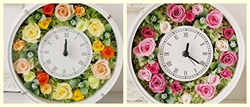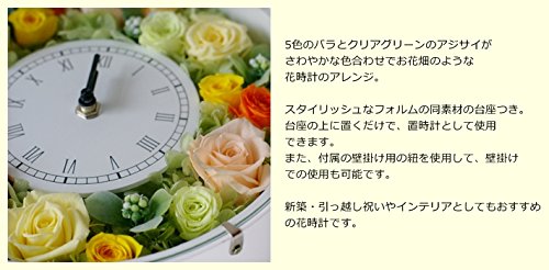- 【ご注意!】Eclaire Flower Design以外のカートよりご購入された場合は、商品は届かずカードの請求だけするという詐欺の可能性がございます。過去にAmazonマケプレに出品していた休眠アカウントを何者かが乗っ取り不正に利用しているようですので、ご注意ください。5色のバラとグリーンのアジサイがさわやかな色合わせでお花畑のような花時計のアレンジ。置時計、壁掛けでの使用も可能です。新築・引っ越し祝いやインテリアとしてもおすすめの花時計です。