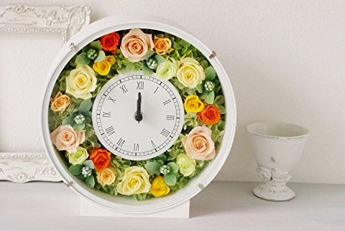 【Eclaire Flower Design】 プリザーブドフラワー 花時計 イエロー/オレンジ