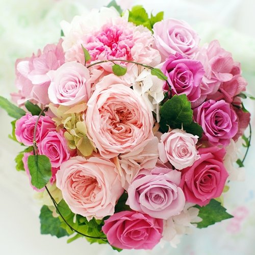 - ★使用花材★オールドローズ、バラ、カーネーション、あじさい(5色) グリーン(アーティフィシャル) ☆仕入れの状況により変更になる場合がございます。