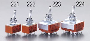 ●パネルカット…12.5mm●端子形状…ハンダ端子●接点容量…-221、-222:5A 125V AC -223、-224:25A 125V AC●接触抵抗…10mΩ以下