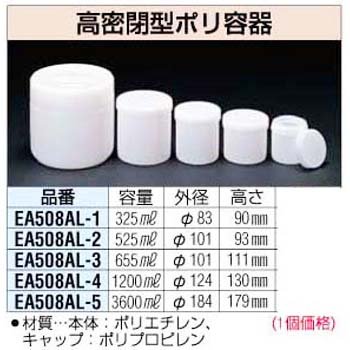 ESCO (エスコ) φ 83x 90mm/ 325ml 高密閉型ポリ容器 EA508AL-1
