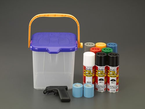 - セット内容:・300mlスプレー (黒×2・白・赤・黄・青・緑・グレー) ・マスキングテープ(50mm×18m)×2巻 ・スプレー缶用ガン ・ケース