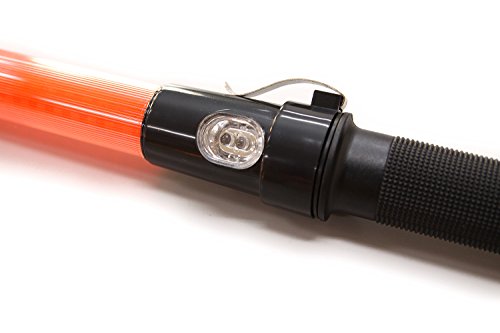 ●材質…ライト部:ポリカーボネイト\nグリップ部、先端:ABS樹脂\n●電源…単2電池×3本(別売)\n●電池寿命(アルカリ乾電池使用時)…\n点滅:約120時間、点灯:約80時間\n●光源…パイプ部:赤色LED×12個\n手元部:白色LED×2個\n●ライト色…赤\n●OFF→赤点滅→赤点灯→手元部白色LED点灯→OFF\n●全長…580mm\n●ライト径…約35mm\n●最大径…約43mm\n●重量…約148g(電池除く)\n●警笛スイッチを押すとホイッスルが鳴り、光と音で誘導できます。\n※警笛は、