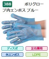 エブノ ポリエチレン手袋 No.388 S 青 (200枚×30袋) ポリグローブ内エンボス ブルー 袋入