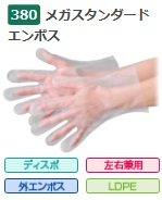 エブノ ポリエチレン手袋 No.380 SS 半透明 (200枚×40袋) メガスタンダードエンボス