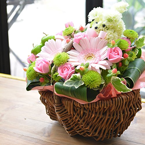- ★商品説明:ピンクガーベラ、ミニバラを使ったアレンジメントです。お供え、各種お祝い用としご利用いただけます。サイズ:高さ約20cm×横約22cm×奥行約18cm