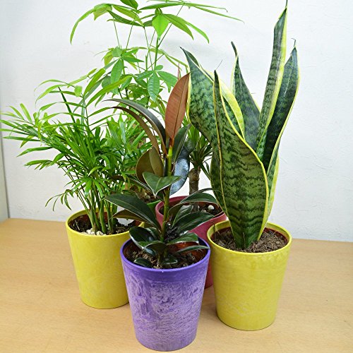 [エルフルール]観葉植物 4号鉢 店長おまかせお試しセット4点 カラフルカバー付