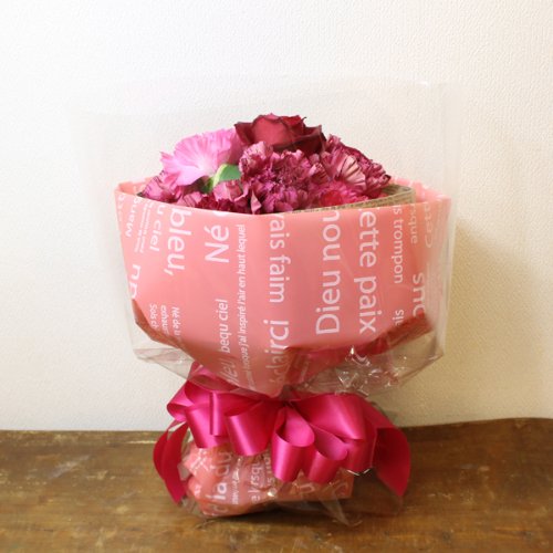 - ★商品説明★バラ、カーネーションを使用したブーケタイプの花束です。サイズ:縦30cm