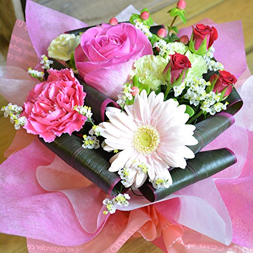 [エルフルール]そのまま飾れるピンクのバラ、ガーベラ、カーネーションのスタンディングブーケ 花束 母の日 花 ギフト