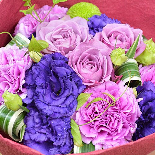 - ★商品説明★紫のお花を使用した花束です。古希のお祝いにおすすめです。サイズ:高さ約35cm×縦約23cm×横23cm