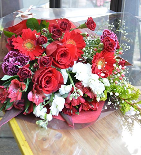 - ★商品説明★クリスマス限定商品!赤系のお花を多く使用しクリスマス仕様に仕上げた限定花束です♪ サイズ:縦約60cm×横約45cm