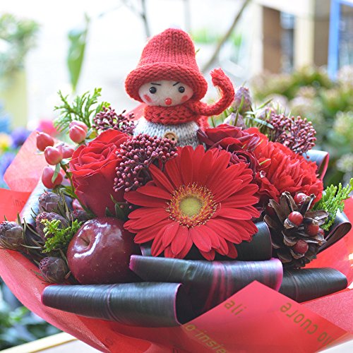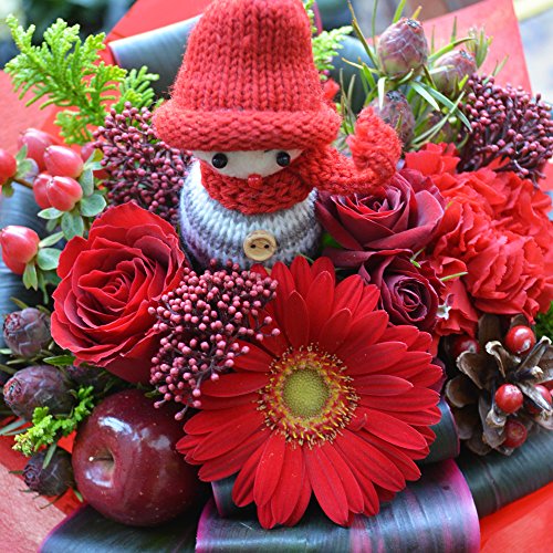 - ★商品説明★クリスマス限定商品!お花の中心にスノーマンが付いたスタンディングブーケです♪ サイズ:縦約20cm×横約30cm