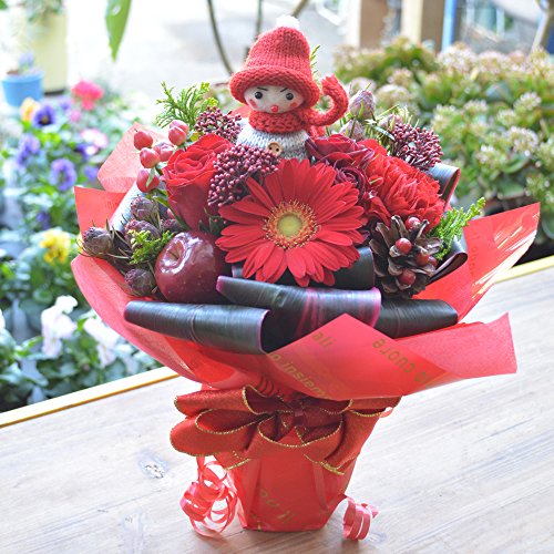[エルフルール]【12月25日まで限定】生花 スノーマンスタンディングブーケ フラワーギフト クリスマス プレゼント 贈り物 花束