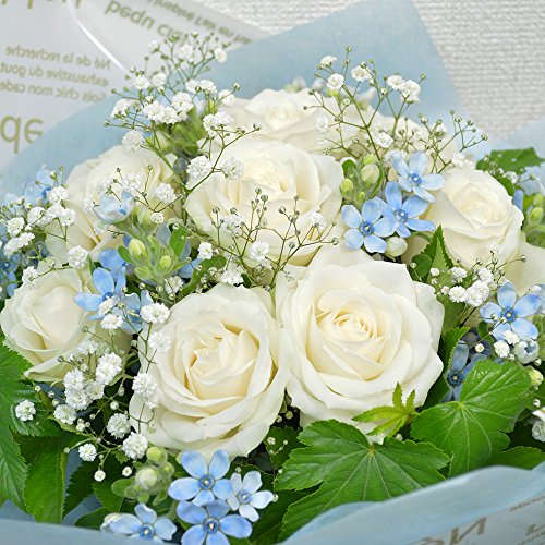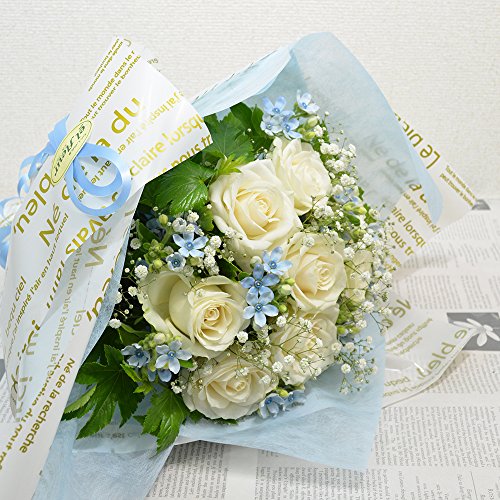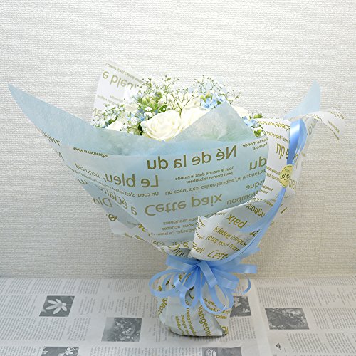 - ★商品説明★白のバラに淡い青色のブルースターを使用したブーケ風花束になります。サイズ:縦約40cm×横約27cm