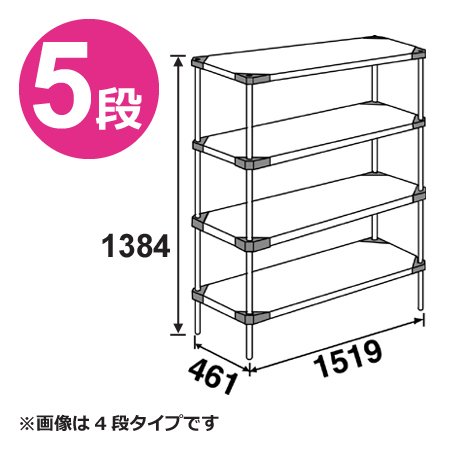 430ソリッドエレクター・シェルフ MSS1520・PA1390 5段 奥行460mm