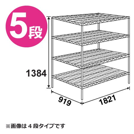 ●サイズ:約 幅1821×奥行910×高さ1384mm●重量:約 78.5kg●付属品:テーパー:棚板1枚に付き4組●段数:5段●耐荷重:250kg(分散荷重)/棚1段(間口1220mmの場合)