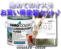 osmoカントリーカラーに、オスモ専用の刷毛もしくはコテバケと、専用洗浄液が1つになった とっても便利なセットです。