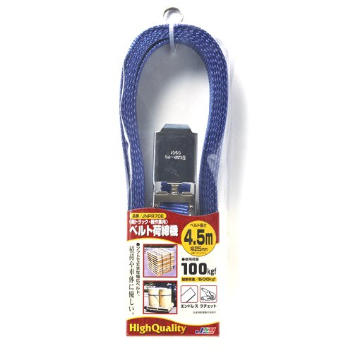 ●【用途】荷物の固定。【機能・特徴】ラチェット式で強く確実に荷締めが出来ます。耐久性に優れたポリエステルベルトを使用しています。エンドレスタイプで荷物の束ね締め用です。【材質】ポリエステル。