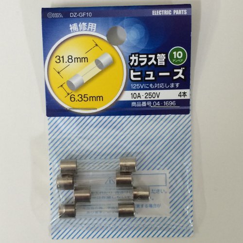 OHM ガラス管 ヒューズ 10A-250V 4本 (04-1696)