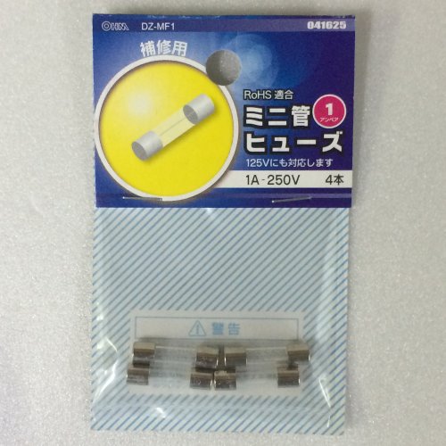 OHM ミニ管 ヒューズ 1A-250V 4本 (04-1625)