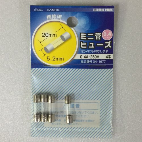 OHM ミニ管 ヒューズ 0.4A-250V 4本 (04-1677)
