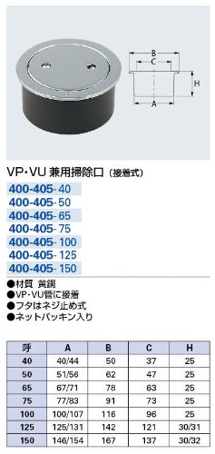 カクダイ 掃除口 接着式 VP・VU兼用 400-405-40
