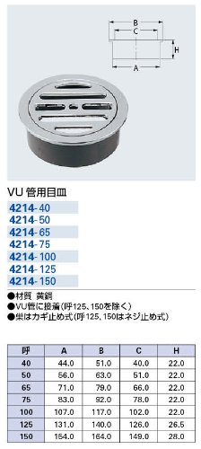 ●【用途】排水金具。●【機能・特長】臭気の上昇や逆流、またはゴミ詰まりを防ぐ役割があります。VU管に接着できます。巣はカギ止め式です。●【材質】黄銅。