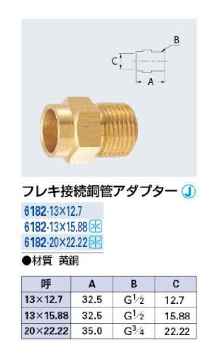 カクダイ フレキ接続銅管アダプター 6182-13×15.88