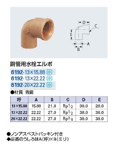 水栓材料 カクダイ 銅管用水栓エルボ 【6192-13X15.88】