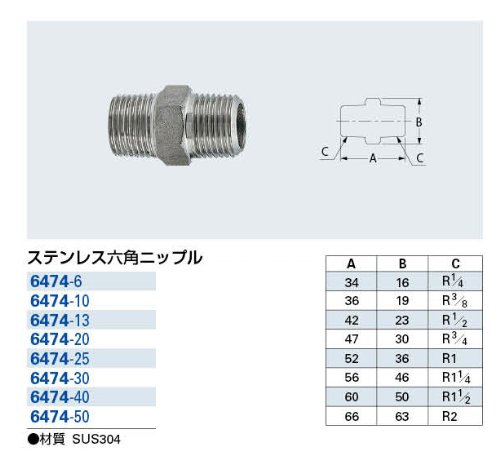 カクダイ ステンレス六角ニップル 6474-10