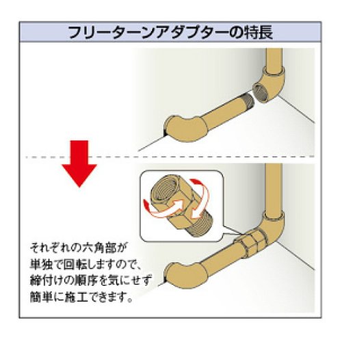 ●材質 青銅 ●ネジ部がそれぞれ回転するため、施工の順序を気にせず配管できます。
