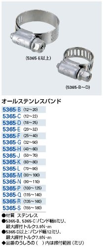 ●5365-B、5365-C:バンド幅8ミリ、最大締付トルク3.9N・m