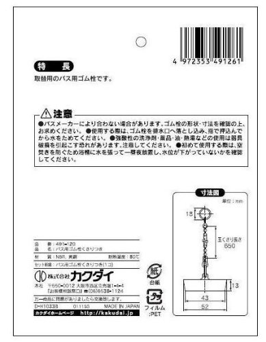 ●最適サイズ 排水口径51ミリ。【注意事項】バスメーカーにより合わない場合があります。ゴム栓の形状、寸法を確認上、お求めください。