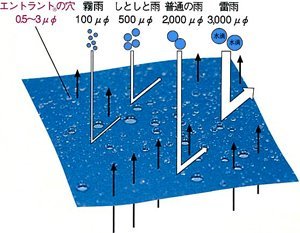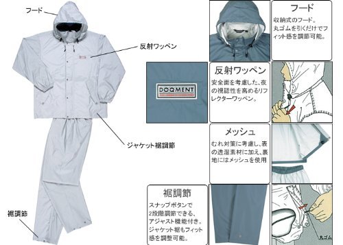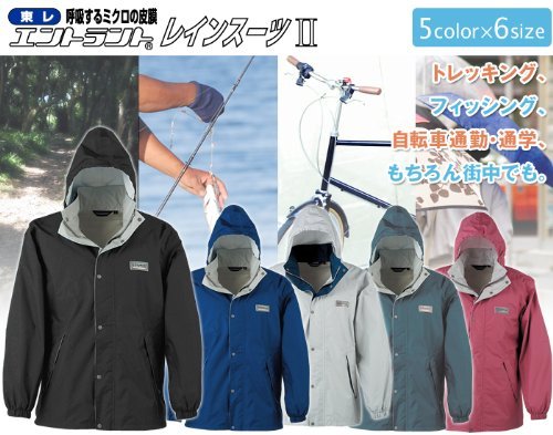 東レのエントラントは衣服内のムレを外に通過させ、雨や水滴ははじいて衣服内に通さない快適機能を発揮します。また、そのほかディテールにもこだわった数々の機能を搭載。フードは丸ゴムを引くだけでフィット感を調節できるアジャスト仕様。衿に収納できます。パンツは裾幅を調節できるスナップボタン仕様。レディース対応可能。