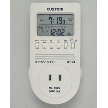 1週間に13組まで組み合わせが可能なタイムスイッチ容量:1500W消費電流:50μA(最大)時計精度:±0.5秒/日バックアップ電池:CR2302(3V)リチウム電池1個●見やすく大きな液晶表示で、次のセット時間が一目瞭然。●タイマー時刻の設定もフレキシブルで簡単。●最大容量1500Wまで使用可能。●停電時のメモリを保護するバックアップ電池付。