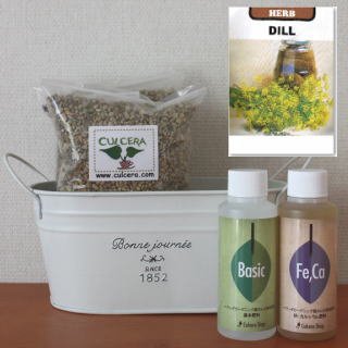 ベランダガーデニング用に開発されたセラミック製土【カルセラ】とプランター・種・液体肥料がすべてセットになった栽培セットです。ベランダや室内で栽培できます。初心者にも簡単なディル。種を蒔く時期は、3月-6月 9月-11月です