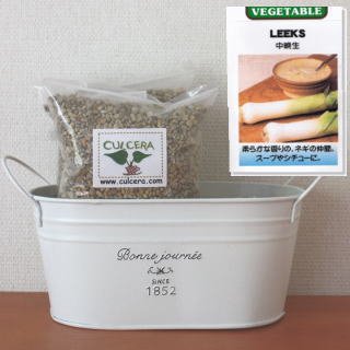 リークの栽培セット/標準セット(液体肥料無し)プランターホワイト仕様