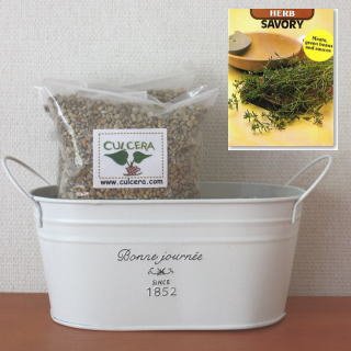 ベランダガーデニング用に開発されたセラミック製土【カルセラ】とプランター・種がすべてセットになった栽培セットです。ベランダや室内で栽培できます。初心者にも簡単なサボリ。種を蒔く時期は、4月-8月です