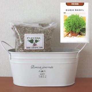 ブッシュバジルの栽培セット/標準セット(液体肥料なし)プランターホワイト仕様