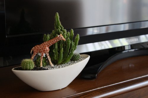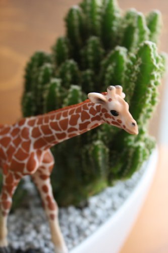 - セレウスペルビアナスと玉サボテンを植え込み、リアルなフィギアのキリンを配置しています