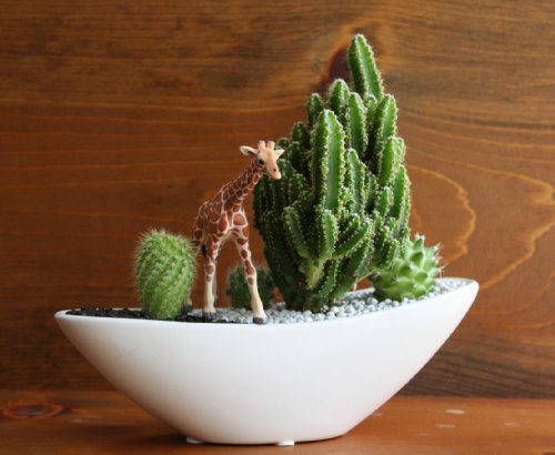 サボテン/カクタス寄植えサファリ(子供キリン)器カラー:ホワイト