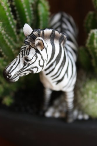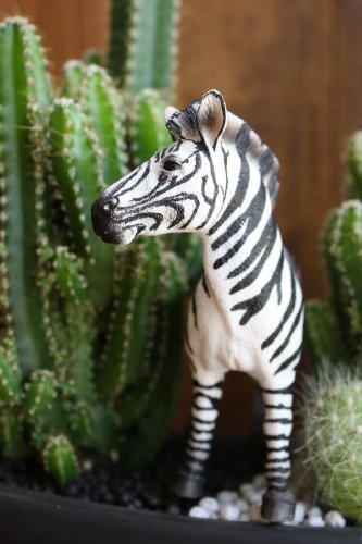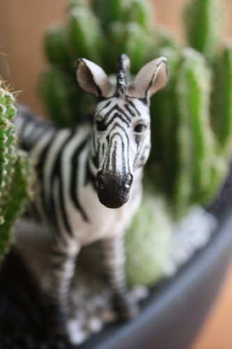 - セレウスペルビアナスと玉サボテンを植え込み、リアルなフィギアのシマウマ(大)を配置しています