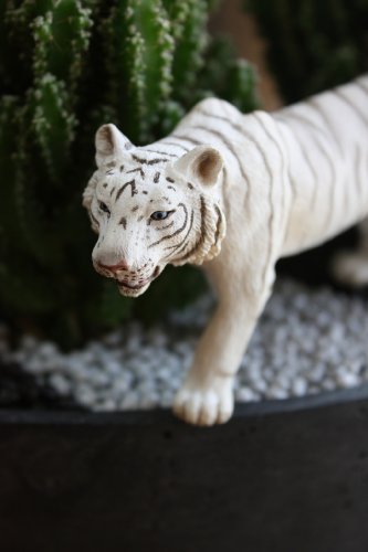 - セレウスペルビアナスと玉サボテンを植え込み、リアルなフィギアのホワイトタイガーを配置しています
