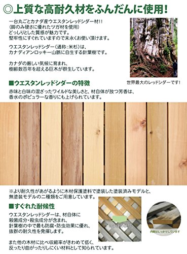 - 材質: カナダ産ウエスタンレッドシダー(ステイン系木材保護防腐塗装) ※脚のみひび割れしにくいツガ材を使用