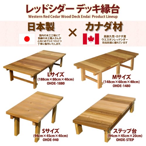- レッドシダーデッキ縁台シリーズ OHDE-1880/OHDE-1480/OHDE-940/OHDE-STEP は互いに組み合わせ可能です。
