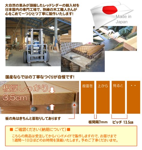 - 商品内容: レッドシダーデッキ縁台 Lサイズ 1台
