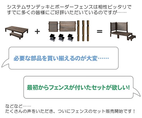 ウッドデッキ キット システムサンデッキ ボーダーフェンス付セット(幅72cm×2/デッキ2台/ステップ台)