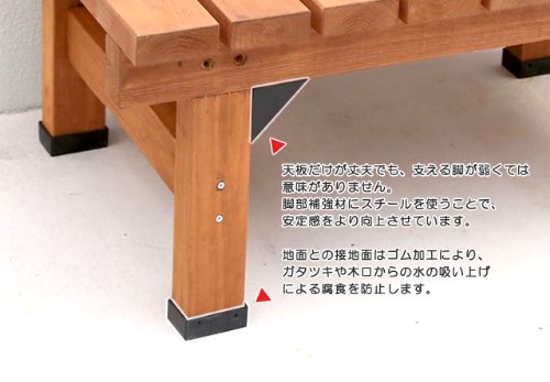 - 仕様: 脚底に防水用キャップ付き。※床下の補強三角部分は木製からより丈夫な鉄製に仕様変更となりました。