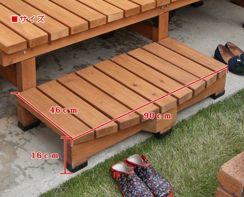 デッキ風縁台用ステップ台(踏み台)単体 幅90cm×奥行45cm×高さ16cm 天板厚35mm ブラウン SS-DES-90LB